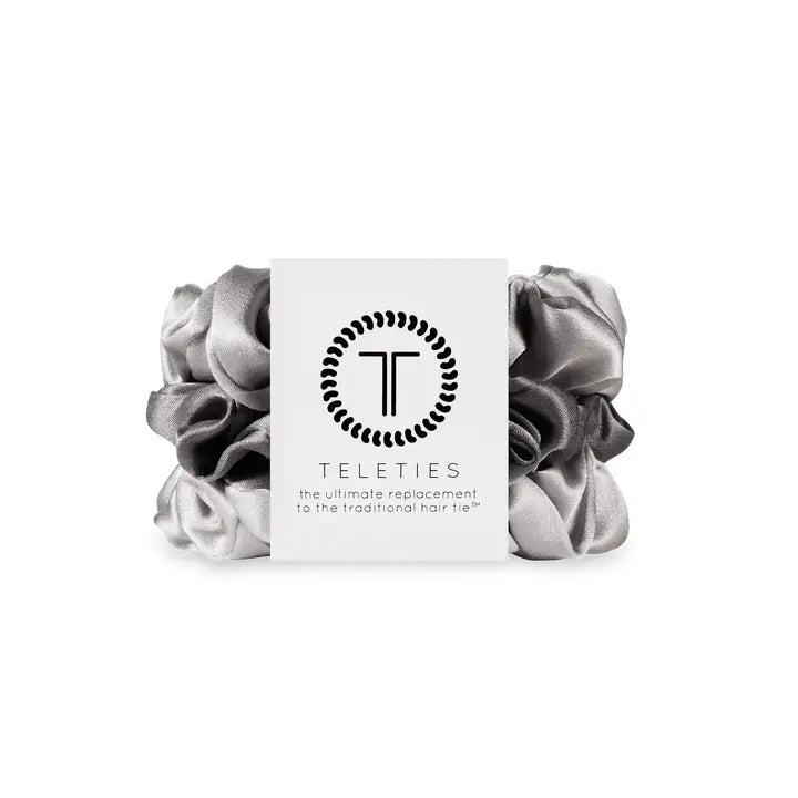 Teleties Silk Hair Scrunchie | Large | Silver Flames