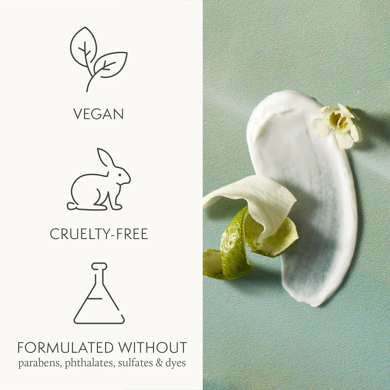 Water/Aqua/Eau, Glycerin, Caprylic/Capric Triglyceride, Cetyl Alcohol, Glyceryl Stearate, Cetearyl Alcohol, Diheptyl Succinate, Myristyl Myristate, Ceteareth-20, Dimethicone, Parfum/Fragrance, Theobroma Grandiflorum Seed Butter, Carapa Guianensis Seed Oil, Oryza Sativa (Rice) Bran Oil, Sodium PCA, Vaccinium Myrtillus Fruit Extract, Sacchraum Officinarum (Sugar Cane) Extract, Citrus Aurantium Dulcis (Orange) Fruit Extract, Citrus Limon (Lemon) Fruit Extract, Acer Saccharum (Sugar Maple) Extract, Ahnfeltiopsis Concinna Extract, Centella Asiatica Extract, Squalane, Sodium Hyaluronate, Aloe Barbadensis Leaf Juice Powder, Phytosteryl/Octyldodecyl Lauroyl Glutamate, Tocopherol, Xanthan Gum, Lauroyl Lysine, Myristyl Laurate, Capryloyl Glycerin/Sebacic Acid Copolymer, Benzyl Salicylate, Citral, Citronellol, Geraniol, Limonene, Linalool, Geranyl Acetate, Linalyl Acetate, Pinene, Tetrasodium Glutamate Diacetate, Phenoxyethanol, Ethylhexylglycerin, Sodium Hydroxide