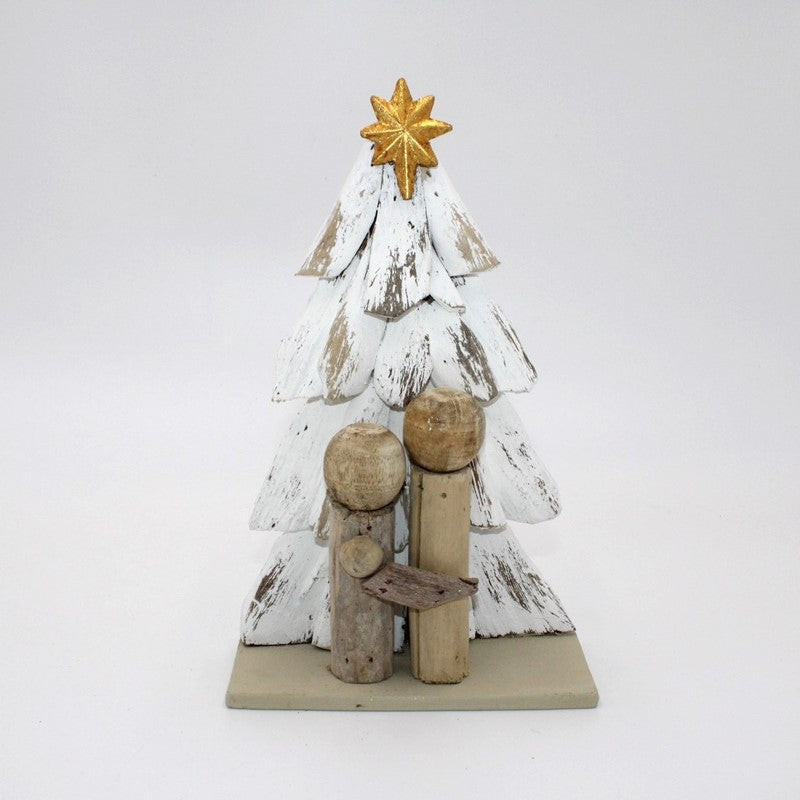 Trade Cie Driftwood Holy Family with Whitewash Tree