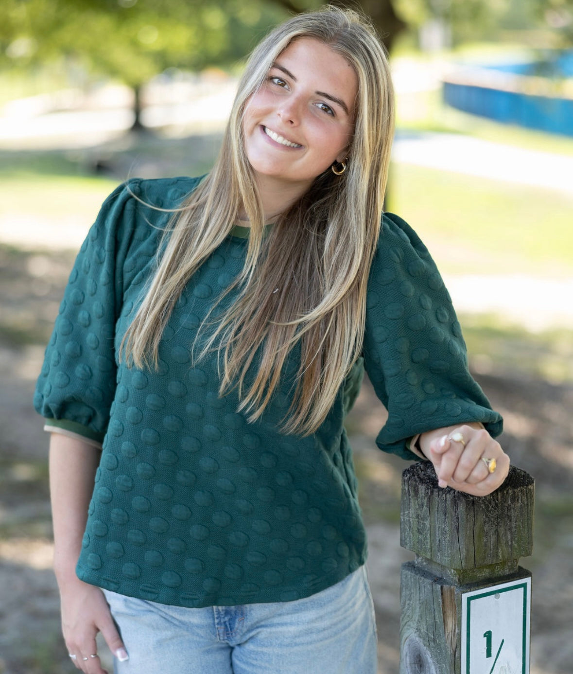 Umgee Jacquard Textured Dot Puff Sleeve Sweatshirt