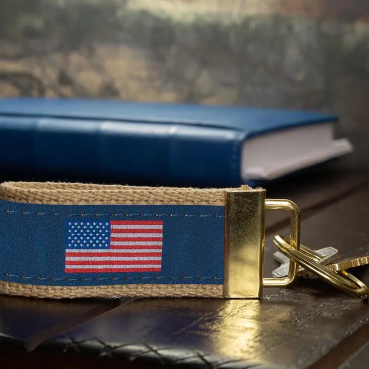 Show your American pride with an original Zep-Pro woven ribbon key fob. It is a stylish and unique way to show enthusiasm while keeping keys together on a brass ring. This Zep-Pro key fob is constructed of cotton webbing, woven ribbon and a brass clasp.